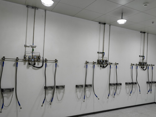 3.5NN2、氦氣、留出氣總監線運用OD1/4”(6.35mm)的地埋管,支線運用OD1/4”(6.35mm)的地埋管。用焊接工藝三通管決出支路來對系統實現供氧。